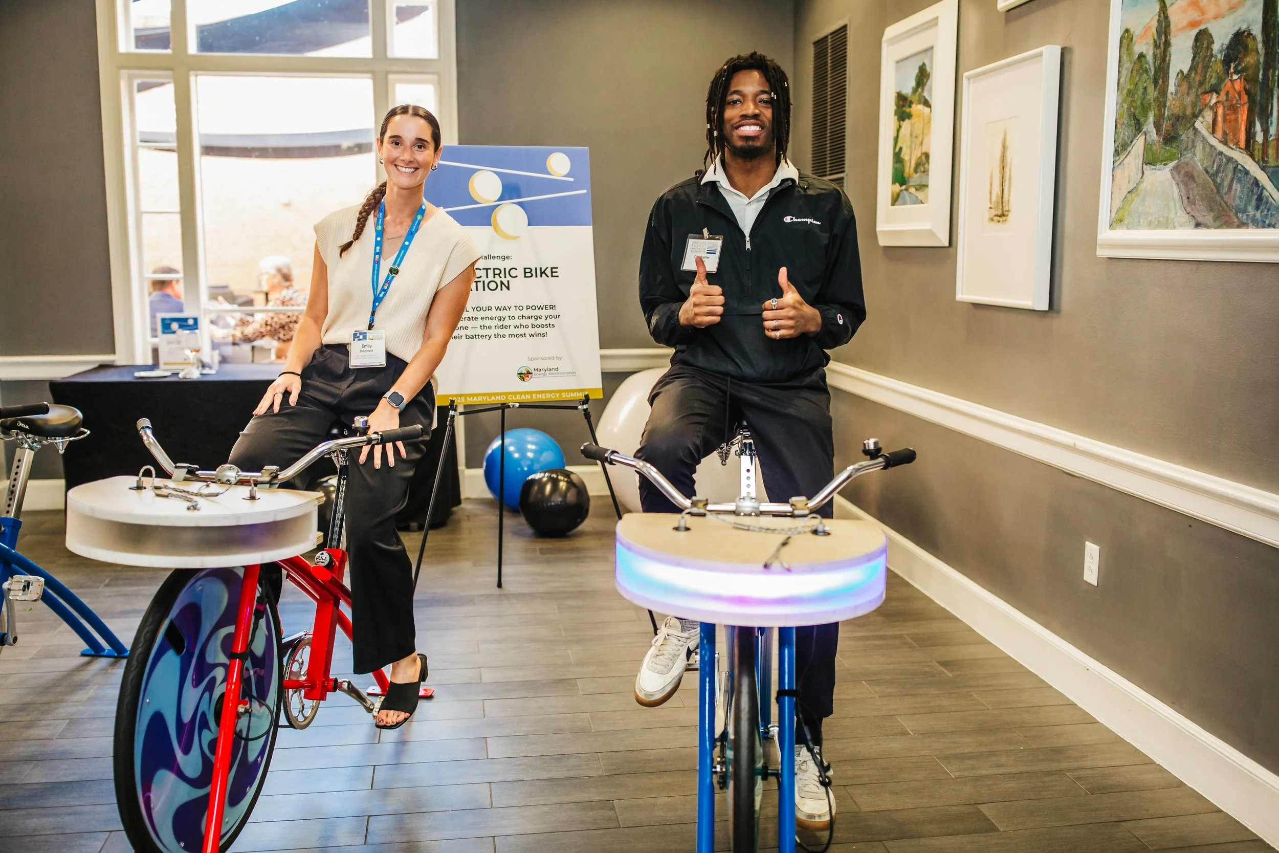Our bikes generate 100% of the power, so no electricity required! That means you can set them up pretty much anywhere!